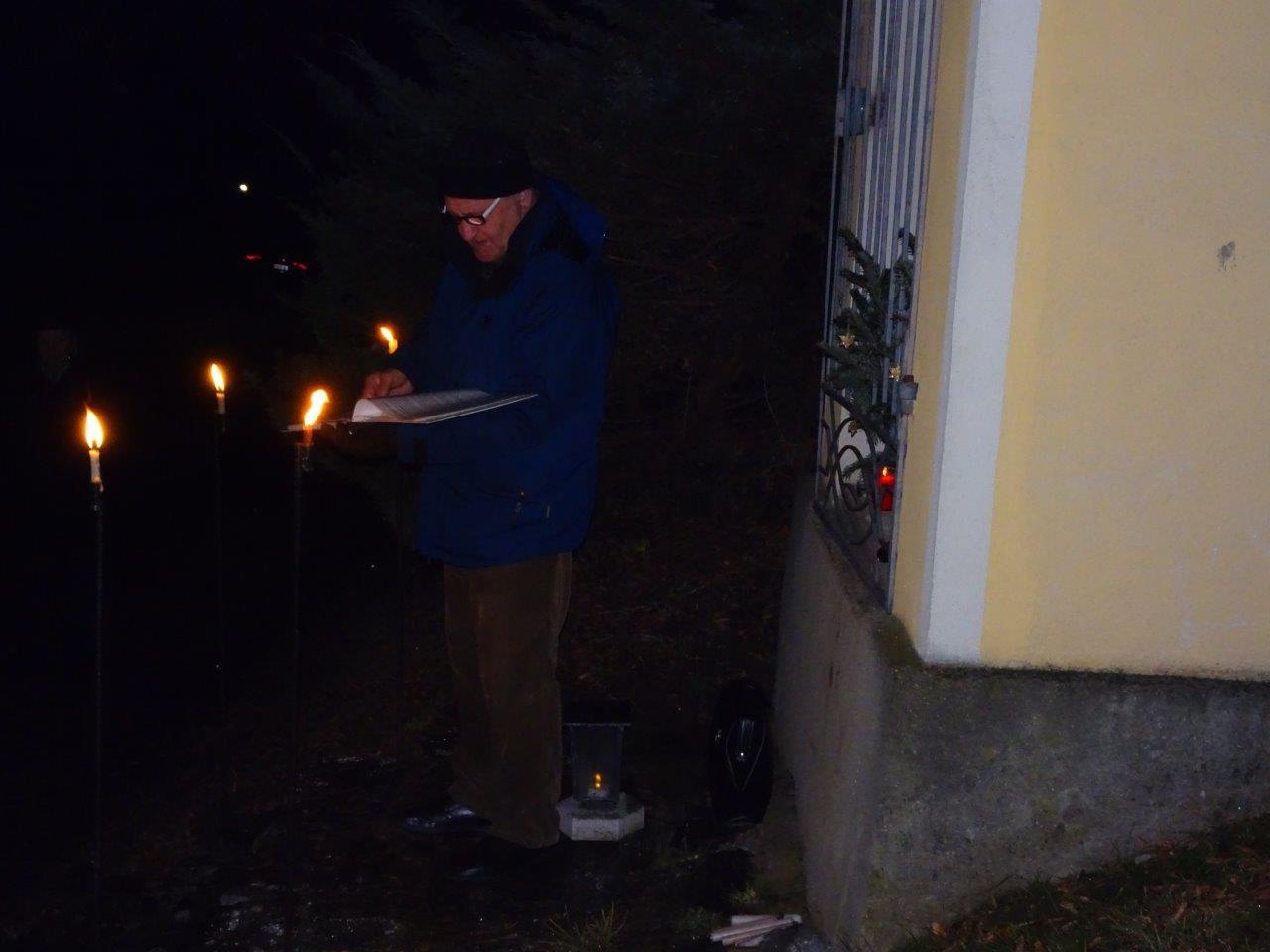 Dort führte Obmann Hans Sobl bereits zum 22. Mal durch ein umfangreiches einstündiges Programm mit vielen bekannten Weihnachtsliedern zum Mitsingen einladend, sinnigen Gedichte und Texten, zum Mitbeten sowie mit elektronischer musikalischer Umrahmung zur wunderbaren Einstimmung auf das bevorstehende Weihnachtsfest. Aber auch an die im Jahr 2017 verstorbenen 8 Kameraden wurde mit Anzünden von Kerzen gedacht.