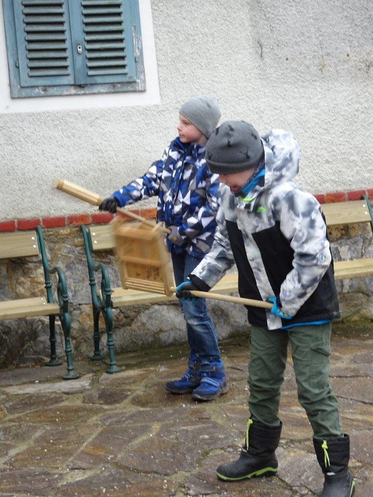 Ihr Ratschenspruch am Karfreitag lautete heuer: "Wir ratschen, wir ratschen zum Englischen Gruß, den jeder Christ beten muss. Kniet`s nieder, kniet`s nieder auf eure Knie, bet`s drei Vaterunser und drei Avemarie!"