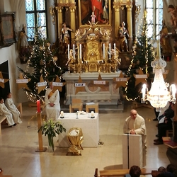 Am Christtag feierte Vikar Norbert Glaser mit der Pfarrgemeinde das Hochfest der Geburt Christi. Das Weihnachtsevangelium und seine Bedeutung für uns heute standen im Mittelpunkt des Festgottesdienstes, der vom Kirchenchor musikalisch gestaltet wurde. Unter der Leitung von Organistin Magdalena Moser wurde neben traditionellen Weihnachtsliedern eine Messe von Karl-Bernhardin Kropf gesungen, die in einstimmiger Fassung - Gotteslob 715 – von den Gläubigen mitzusingen war. So erlebten wir in unserer weihnachtlich strahlenden Kirche einen wahrlich festlichen Weihnachtsgottesdienst!