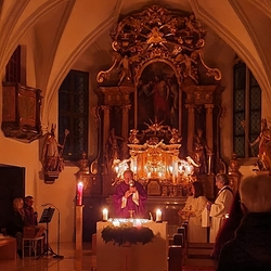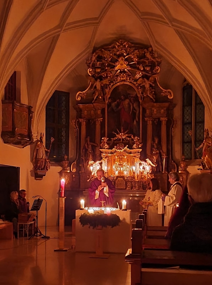 In unserer Pfarrkirche feiern wir jeden Dienstag im Advent um 6 Uhr morgens „Rorate“. Trotz der frühen Morgenstunde nehmen die Gläubigen gerne in der nur mit Kerzen beleuchteten Kirche an der Rorate-Messe teil, in der adventliche Lieder mit zarter Musikbegleitung gesungen werden. Im Anschluss an den Gottesdienst sind alle zum Frühstück im Pfarrheim eingeladen, das PGR-Mitglieder in Allerfrühe richten. Die letzte Gelegenheit für einen Rorate-Besuch in diesem Advent ist am Dienstag, 20. Dezember, um 6 Uhr morgens.