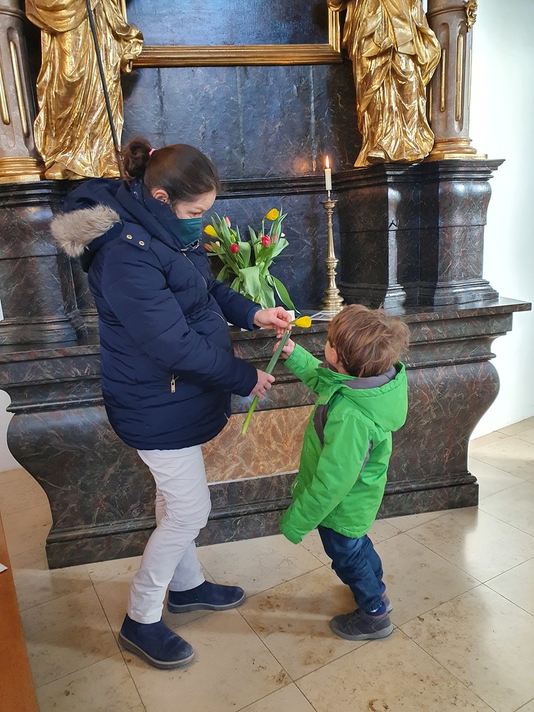 Mit einer Blume zum bevorstehenden Valentinstag wurden die Gottesdienstbesucher/innen bei der Sonntagsmesse am 13.02. überrascht.