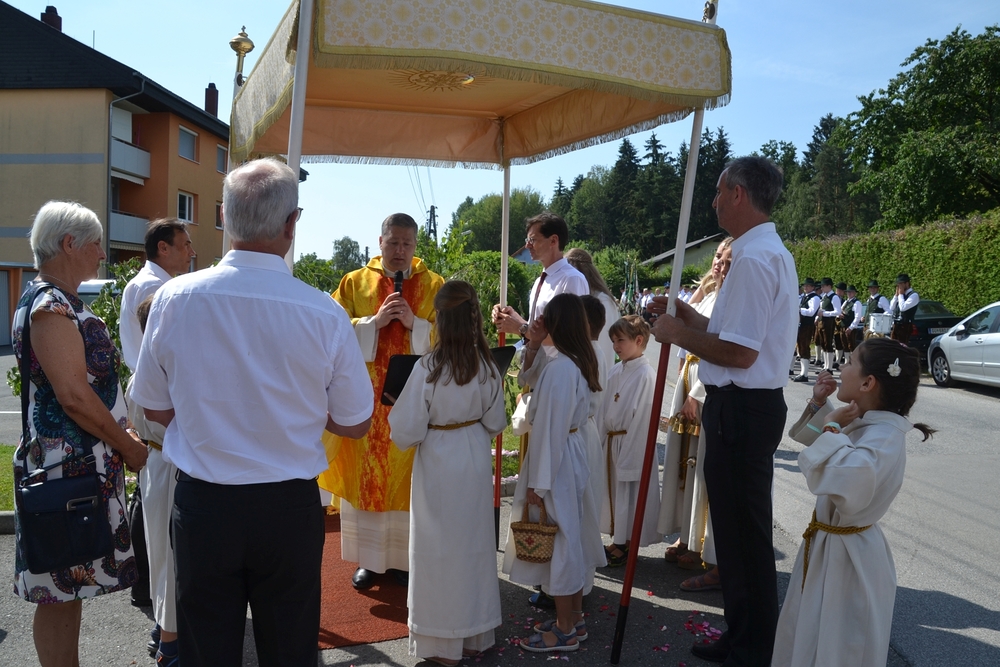 Mit Musik, Gebet und Gesang bewegte sich die Prozession zu den vier Altären, wo Lob und Dank, aber auch Fürbitte ausgesprochen wurden.