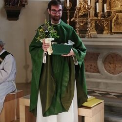 Nach herzlicher Begrüßung durch Diakon Michi Zepf zelebrierte Markus, der ehemals Pastoralpraktikant in unserer Pfarre und Pastoralreferent im Seelsorgeraum Kaiserwald gewesen war, in festlichem Rahmen die heilige Messe.