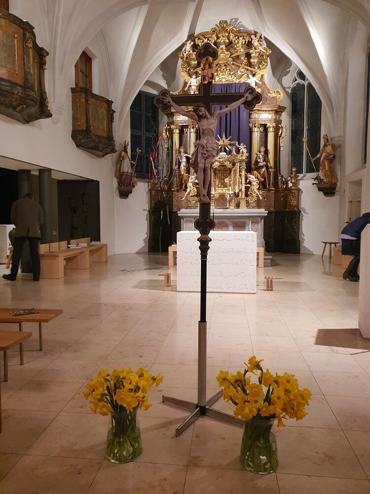Im Hören der Leidensgeschichte verinnerlichen wir das Leiden und Sterben Jesu. Wir gehen in Gedanken den Weg mit IHM und drücken in der Kreuzverehrung mit einer Blume unsere Hochachtung aus. In uns lebt die Hoffnung, ja die Gewissheit, dass es nicht beim Karfreitag bleibt!