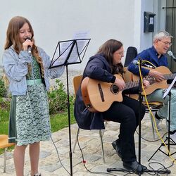 • an die sechs Musiker, die in ihrer Freizeit unseren Gesang unterstützten und den Gottesdienst feierlich mitgestalteten: Chiara und Katharina Guggi-Bärnthaler (Querflöte), Helma Arjmand (Geige), Ursula Schrei (Gitarre), Maria Kleindienst (Gitarre) und Michael Krenn (Bass)