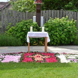 Im Zentrum der schön gestalteten Feier standen ein Taufgedächtnis mit Weihwasserritus, ein Evangelium (Mt, 6, 26-33), Blumentexte (in denen man sich mit der einen oder anderen Blumenbeschreibung ganz gut identifizieren konnte), Dankesworte sowie Fürbitten.